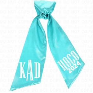 Embroidered satin sash for Homecoming, Prom, or Wedding Bouquet. These are available made to order satin sashes. You can customize your bouquet sash with the date and a monogram, boyfriend/girlfriends name, school name, it's up to you!